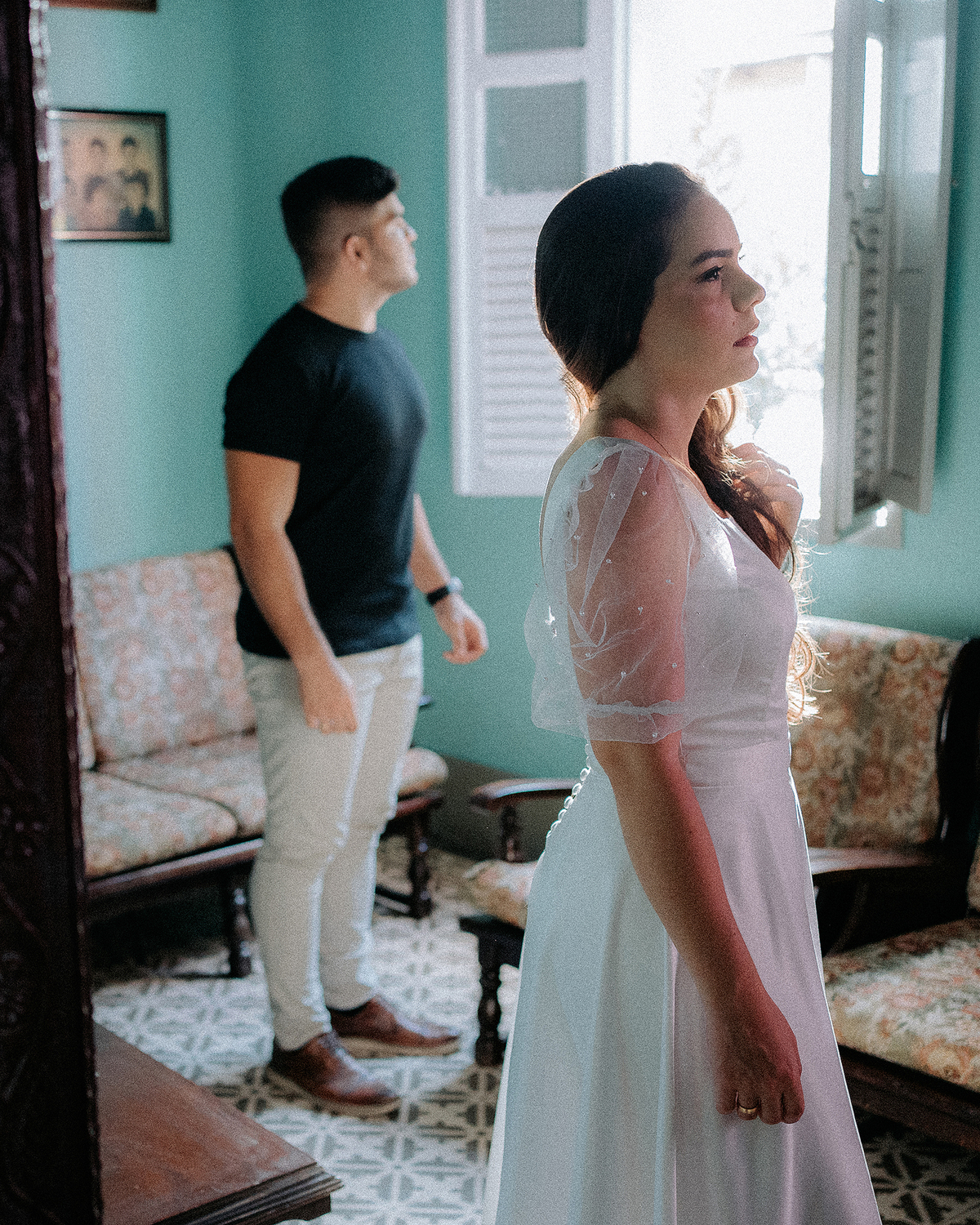 O ensaio prewedding de Lívia e Mateus foi muito mais do que um simples registro de amor. Foi uma viagem no tempo, um retorno às raízes e à essência do que realmente é o amor que se constrói com o tempo e com as memórias. O local escolhido para a sessão foi, por si só, uma verdadeira declaração de afeto e reverência: a casa dos avós do Mateus, Dona Desinha e Valdemar Cândido, agora em memória, mas ainda tão presentes nos corações do casal. Dona Desinha, uma figura central na história do amor de Lívia e Mateus, sempre foi a confidente que, com suas palavras sábias e gestos carinhosos, ajudou a fortalecer o relacionamento deles ao longo dos anos. Era nela que o casal se apoiava, e suas orientações se tornaram pilares para que o amor deles se solidificasse. Ao entrar na casa, parecia que o tempo havia parado. O cheiro da vovó ainda estava no ar, e até a poeira que se erguia nos raios solares parecia contar histórias antigas, de momentos vividos e de sentimentos que nunca se perdem. Esse cenário, que parecia tirado de uma cena de filme, se tornou o palco perfeito para que Lívia e Mateus revivessem aqueles momentos preciosos de orientação e carinho. Entre beijos, abraços e olhares carregados de significado, o ensaio se desenrolou, fluindo naturalmente pelas emoções que o ambiente e a memória coletiva daquele espaço provocavam. Cada click da câmera era como um tributo aos conselhos de Dona Desinha, e ao amor que os dois construíram juntos. Foi um ensaio que não só retratou a história de um casal, mas também a conexão com o passado, com os que vieram antes deles, e com a promessa de continuar um legado de amor e união. Reviver esses momentos, nesse lugar tão especial, foi um presente para todos nós, e a memória desse dia ficará eternamente gravada na alma de Lívia, Mateus e, claro, na nossa memória coletiva. A beleza deste ensaio não estava apenas nas imagens capturadas, mas no profundo significado que elas carregam: a certeza de que o amor verdadeiro transcende o tempo, e que, muitas vezes, ele vive e se fortalece nas pequenas lembranças e no legado de quem sempre esteve ao nosso lado.